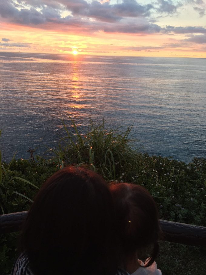 その後、ホテルの先にある万座毛の夕日がキレイということなので行ってみた。