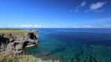 沖縄本島北部の恩納村にある万座毛は「万人も座する草原」(毛とは草原のこと)琉球王朝時代、尚敬王が「万人を座するに足る」と賞賛したことが名の由来と言われています。断崖の先が象に似てることで有名で眼下に広がる海はとってもきれいです。