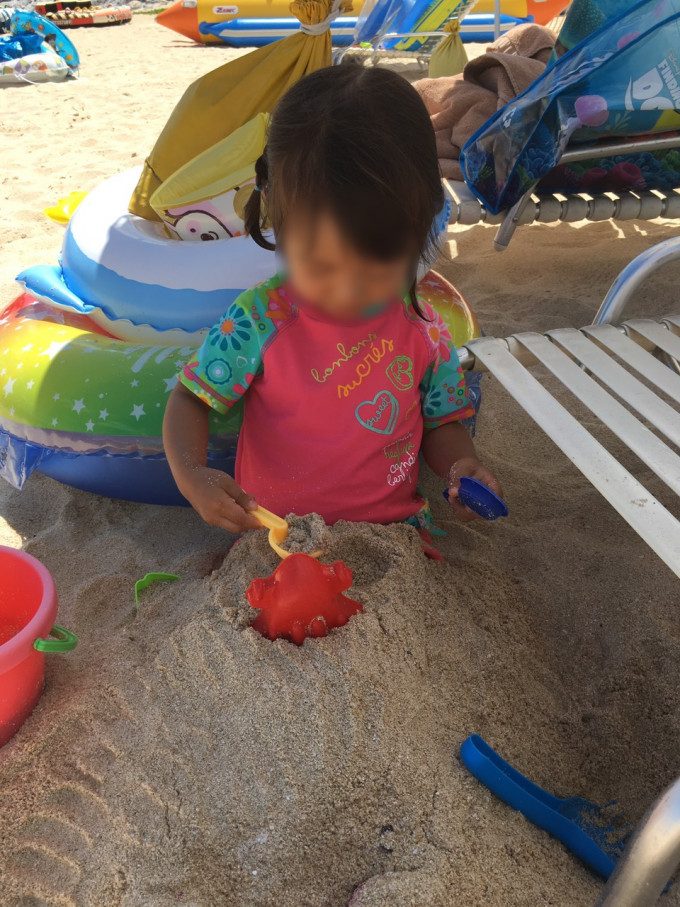 その後上の子はシュノーケリング。少ないけど小魚がそばを泳いでいて、隠れクマノミも見つけて大満足。
