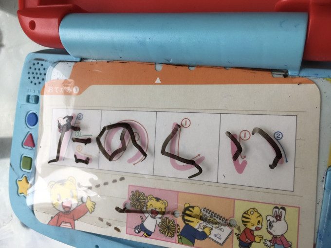 下の子(2歳9カ月)が見ぬ間になぞっていたらしい。しかも利き手ではない左手で。