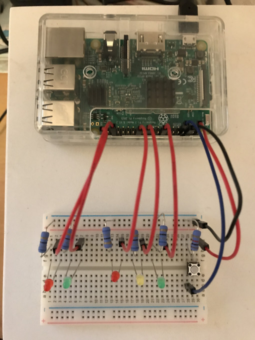 こんな感じになる↓。車の信号が赤になったあと、歩行者信号が青になるまで1秒位いれたり、歩行者が赤になった後に車の信号が青になるまで1秒位いれたりしたほうが本物ぽい。改修の余地有りだがまぁ良しとする。