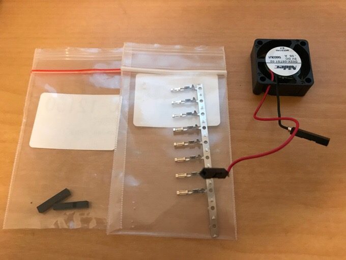 まず、ファンですが3.2Vの都合の良いものは滅多になく、いちおう秋月さんにあるにはありましたがちょっと不安があり、よくよくネットで調べたら5V 100円ものが秋月さんの通販で売っていて、3.2Vでも動く。むしろ音が静か。