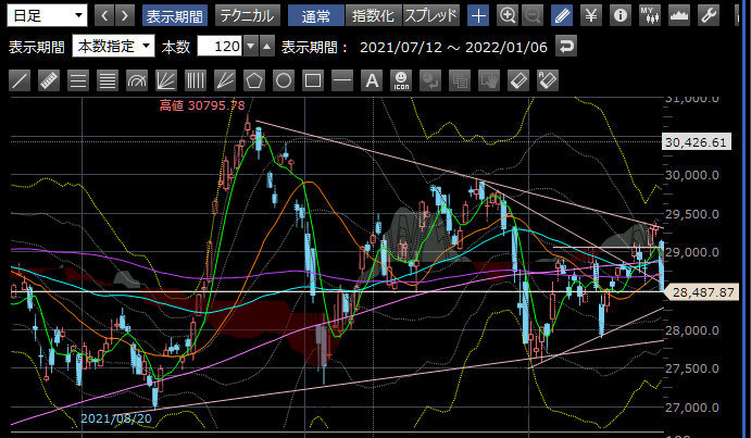SOX指数も大分下げていて日本株にも大影響って感じでしょうか。
