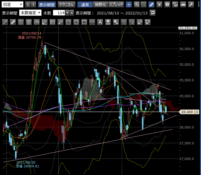 コロナ感染が増えているのが下げの理由ですかね。後場で一回28500上に跳ね返してきてたんですが14時過ぎに売られましたね。