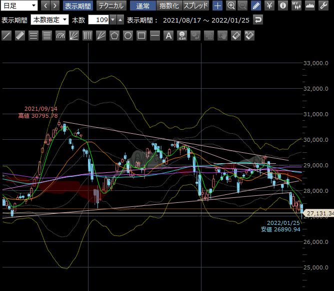 アメリカ3指数が場中に大幅下落からプラ転してきた勢いで日本もそんなに下がらないかなと思っていたら結構下げました。