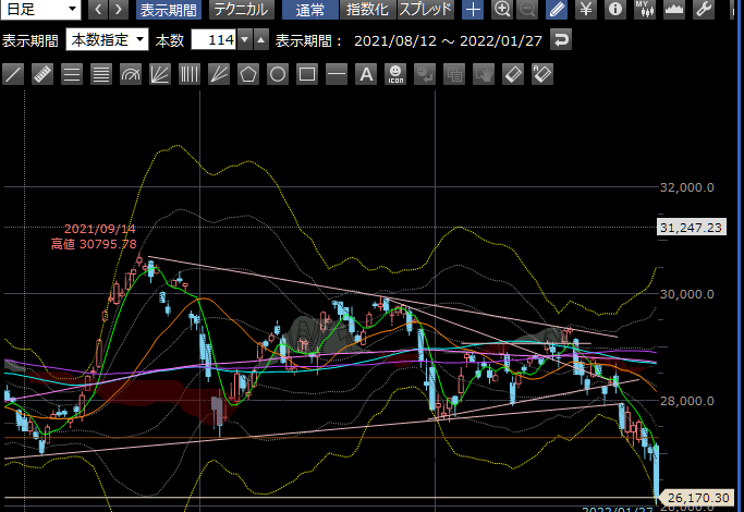 現時点で日経先物は26500くらい。ザラ場引けは26170。うーん。。。