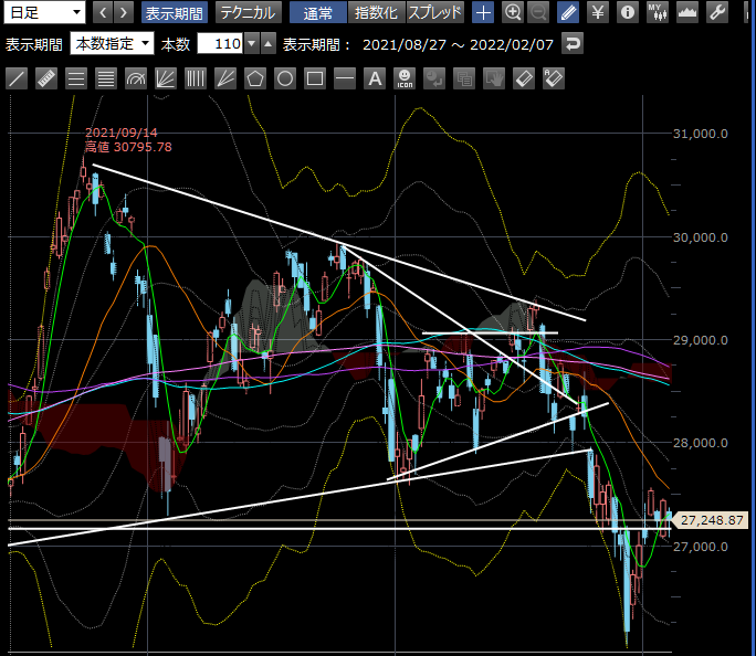 朝しばらく下落して、27100割ったところで買いが入った感じ
