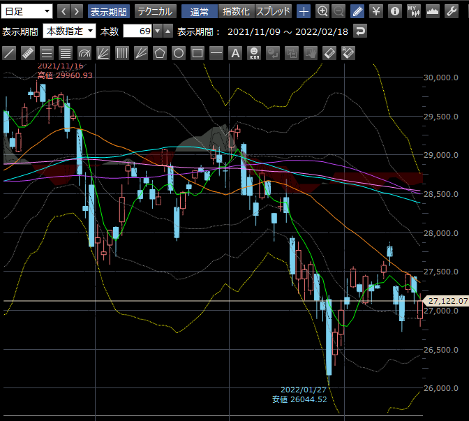 今日の日経平均は続落。昨日のニュースを引きずってアメリカが下げたので日経も下げの流れから米露外相会談の可能性が伝わった後に戻した感じ。