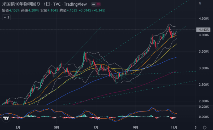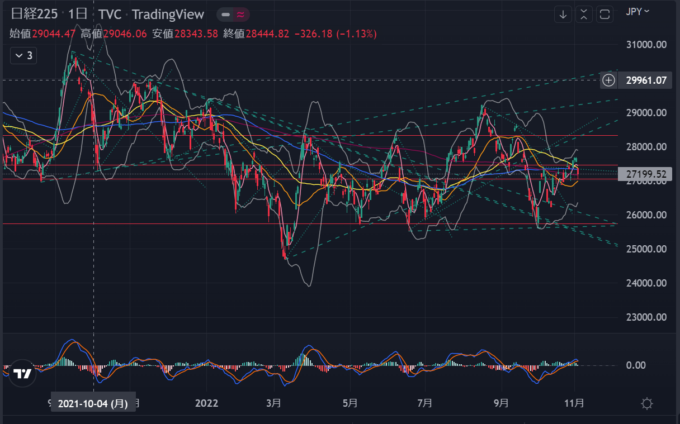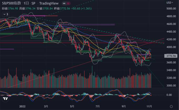 SP500チャートはここで下げ止まりそうな気はするけどMACDがまだ下落トレンドなので慎重に考えたほうがよさそうではある。
