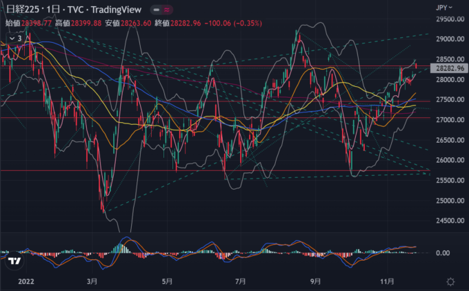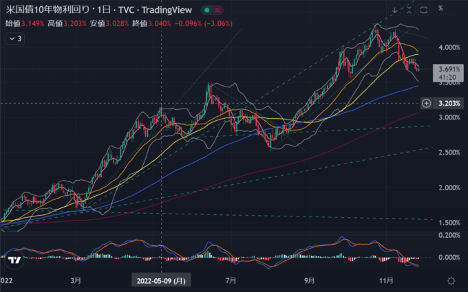 水曜日は中盤に少し下げたがFOMC議事要旨で早期の利上げ減速が示唆されたのを受けて引けにかけて上昇。尻上りなので上昇トレンドなのか?