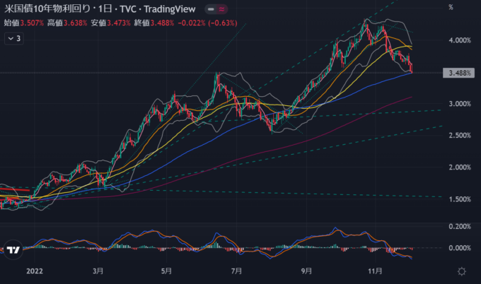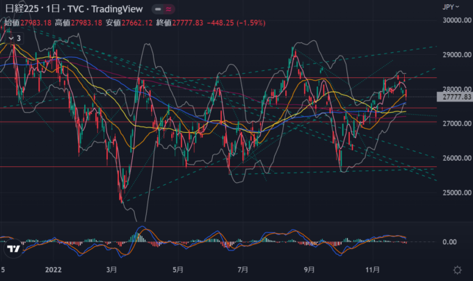 これまで景況感指数が悪いと利上げ幅減速期待で株価は上げていたけど、最近は景気後退懸念にもなってきているので、世の中がどのように考えているのかを見ながら取引な感じ。