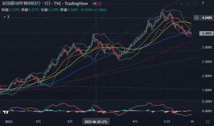 景気後退懸念とは言え、次の決算みないと何とも言えないし、利上げをためらっていくような結果が続いているのでどこかで一旦上昇しそうな気がするが、なんとも言えない。