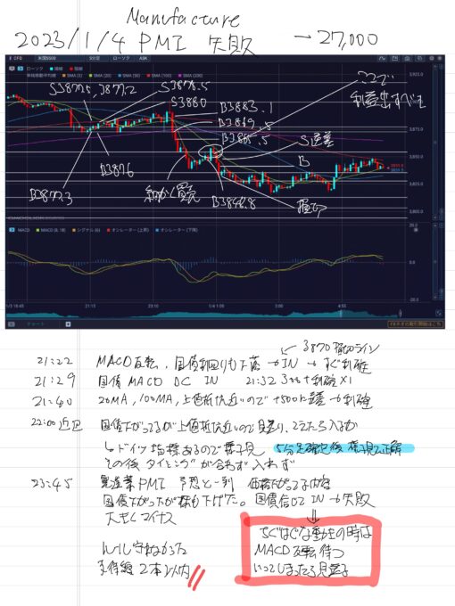PMIの中身で価格が下がったことが書かれていたのと、予想通りだったことで上昇するのでは?と思い込んで持ちすぎてしまった。PMIまでは良かったのだが。。。