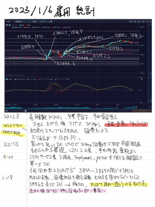 まぁ今日はルール通りにできたから良かったかな。最後に売りで入ったのはMACDが米3指数とも下落、国債利回りもMACD上昇になったので入ったけど、一日のトレンドの流れが株価上げ方向だから逆らってはダメでしたね。ここは失敗。やるとしたら押し目待ちでした。反省。