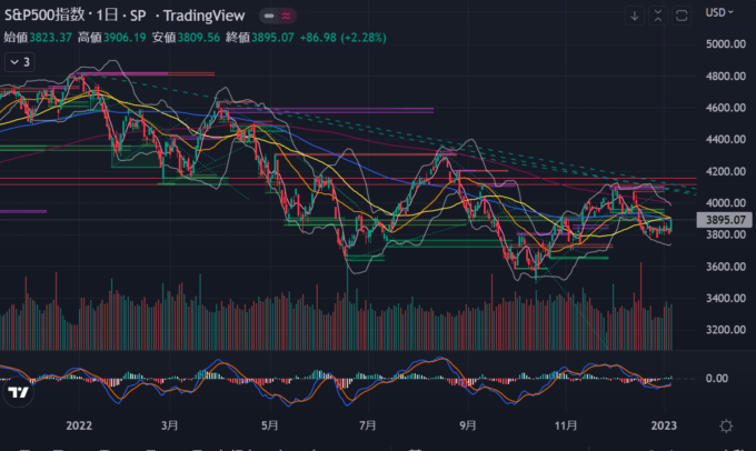 1/5までは正直センチメントがかなり悪い感じでしたが、結構株価は底堅くSP500は3800くらいでなんとか耐えていた。