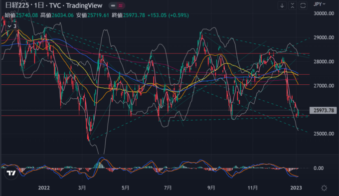最近円高の流れだったり日銀の金融政策変更によって利上げ方向に動く可能性があるので日経平均は大きく下がっていますね。中国が今強含んでいるのでそこに救われている感もあるかもしれず、少し戻すかもしれないですがあまり期待できないかな。
