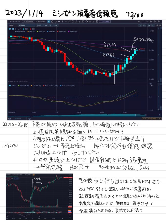 2023/1/14 ミシガン消費者信頼感指数 +2100円