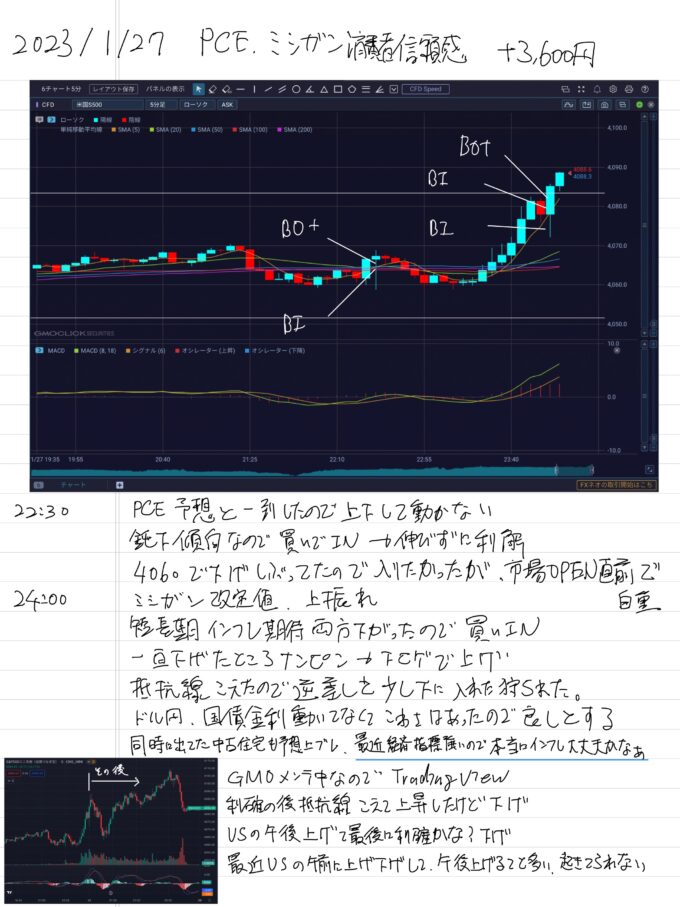 2023/1/27 PCE,ミシガン消費者信頼感指数 +3,600円