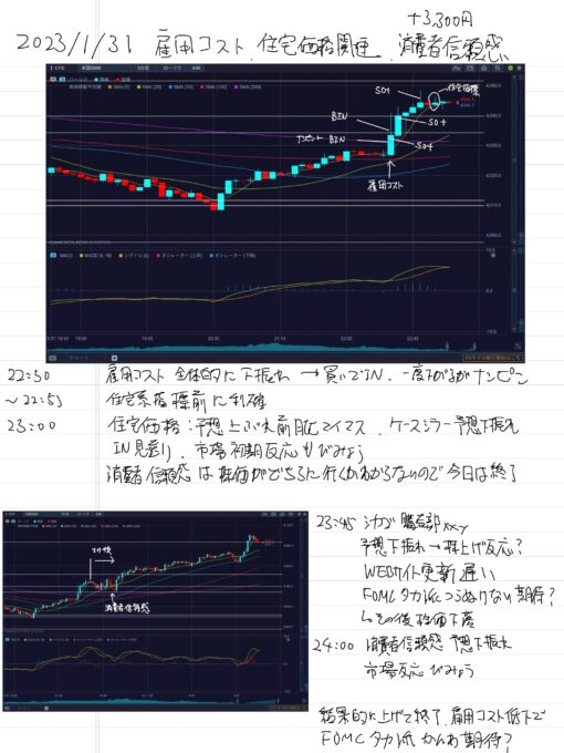 2023/1/31 雇用コスト、住宅価格関連、消費者信頼感 +3,300円