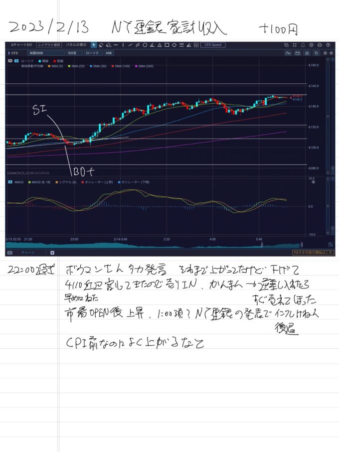 2023/2/13 NY連銀家計収入 +100円