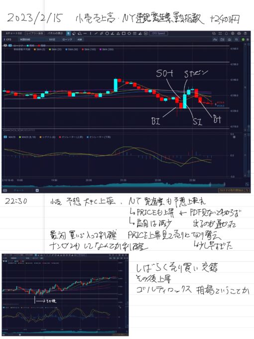 2023/2/15 小売売上高、NY連銀製造業景気指数 +2,400円