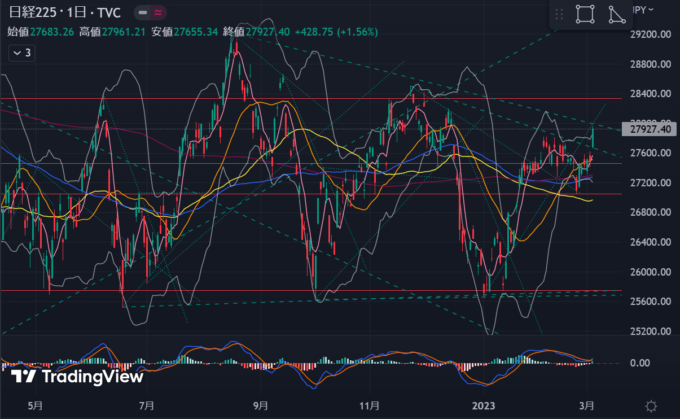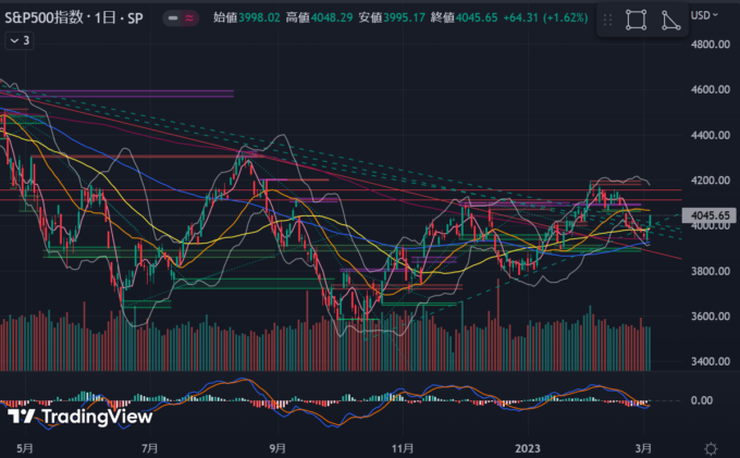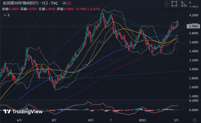 どうも木曜日に200MA反発して上昇トレンド転換、ボスティックさん次回FOMC0.25%支持、夏までに利上げ停止ありうる発言がトリガーとして扱われているけど、ターミナルレートの上昇は示唆していてなんか釈然としない。