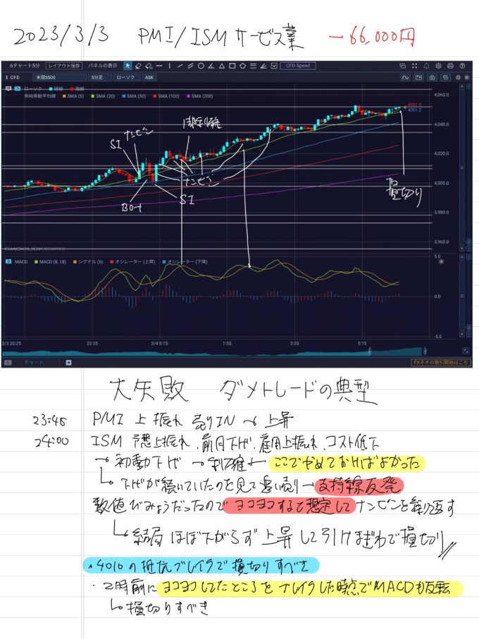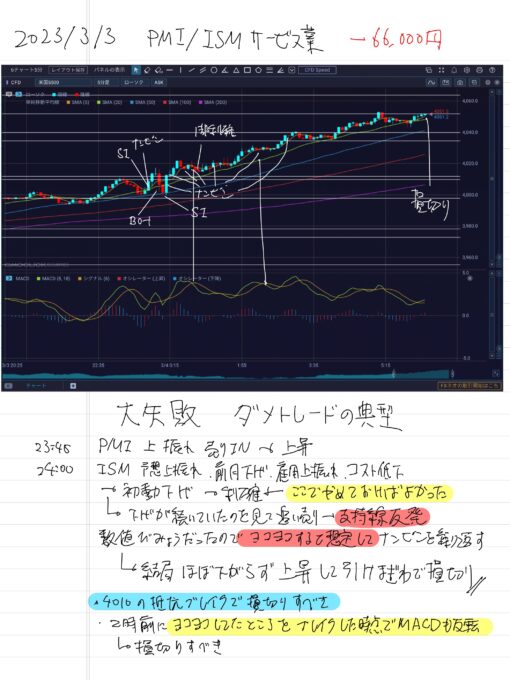 2023/3/3 PMI/ISM サービス業 -66.000円
