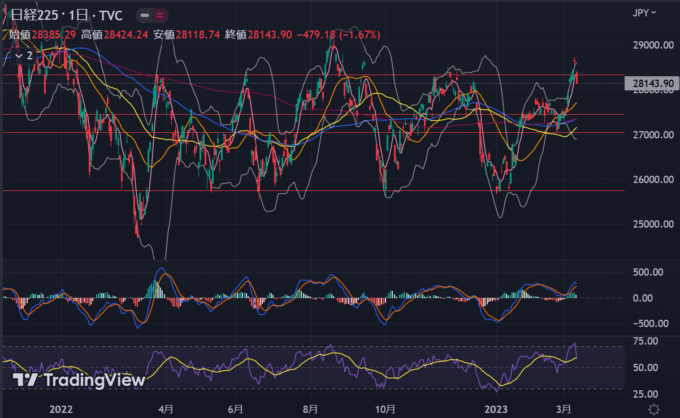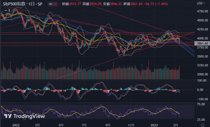 やっぱりなという感じで前週にボスティック総裁のハト派発言でおかしな上げをしていた株式市場はパウエルさんの現実的な議会証言、0.5%利上げもありうるとの示唆で下げて前週までの上げを吐き出し