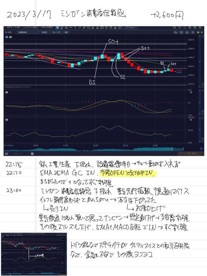 2023/3/17 ミシガン消費者信頼感 他 +2,600円
