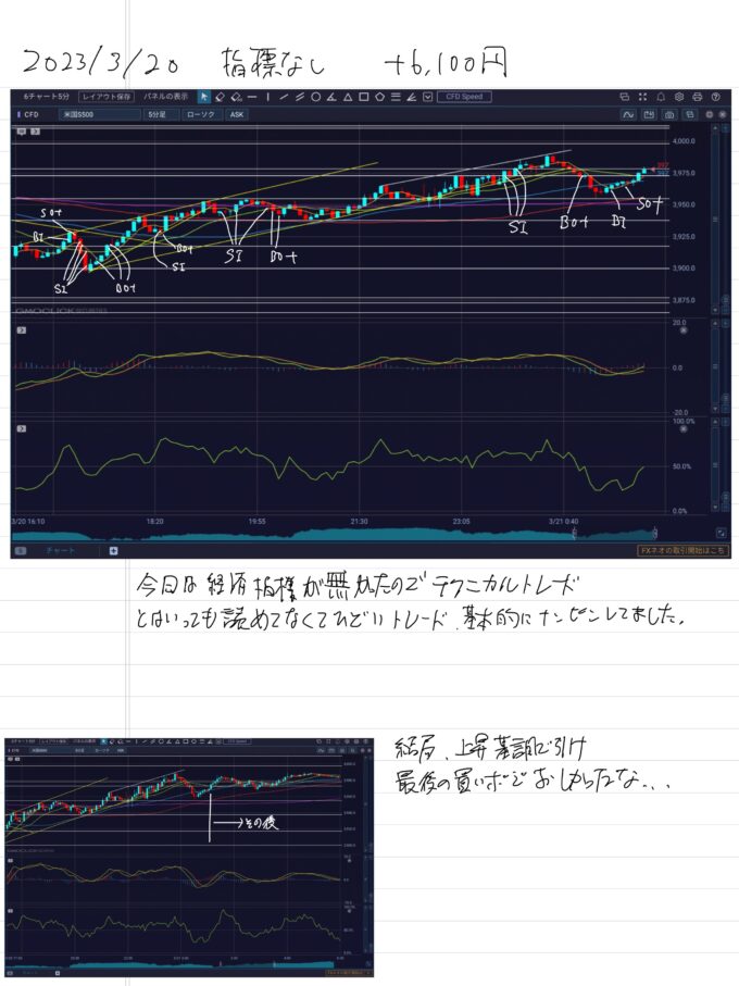 2023/3/20 指標無し +6,100円(日経株のデイで-5,600円…)