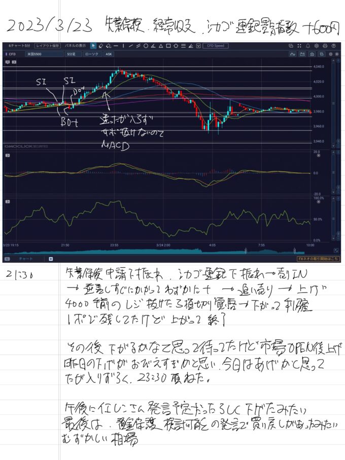2023/3/23 失業保険,経常収支,シカゴ連銀景気指数 +600円