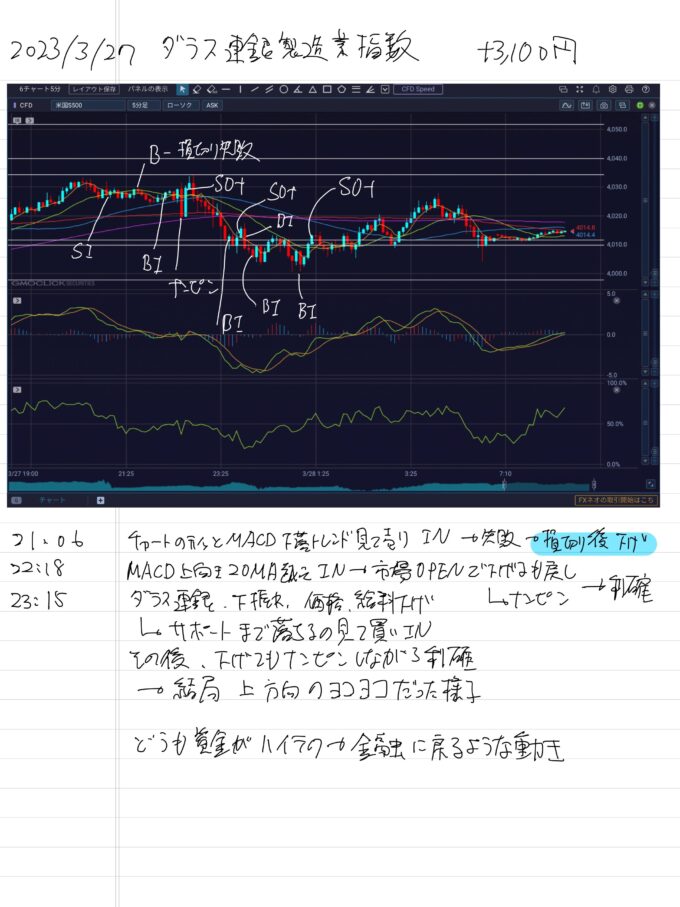 2023/3/27 ダラス連銀製造業指数 +3,100円