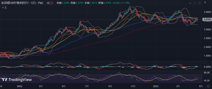 景気後退懸念とFF金利高止まりの間での綱引きのような感じ