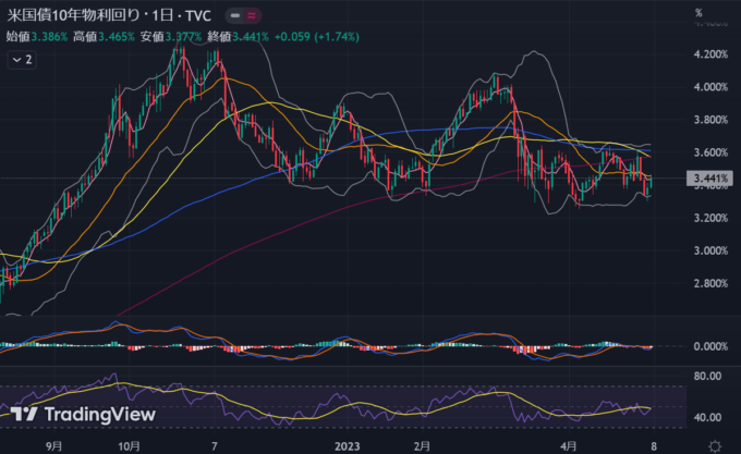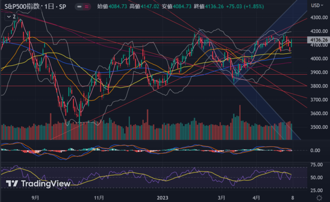 雇用統計が強すぎる内容で、FOMCの利上げ継続を懸念する内容だったものの景気減速懸念後退?で上げ(というかアップルと地銀の内容で上げたんだろうけど)