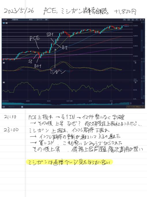 2023/5/26 PCE,ミシガン消費者信頼感 +1,800円