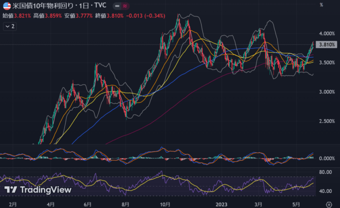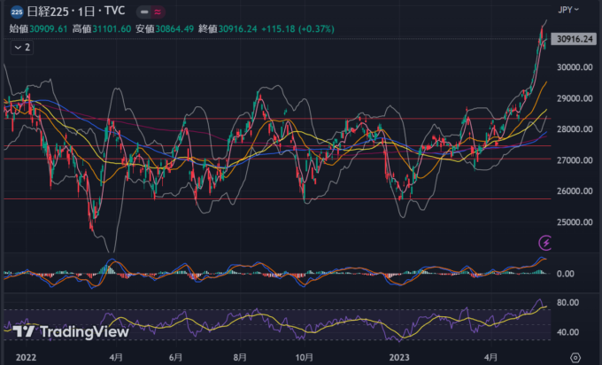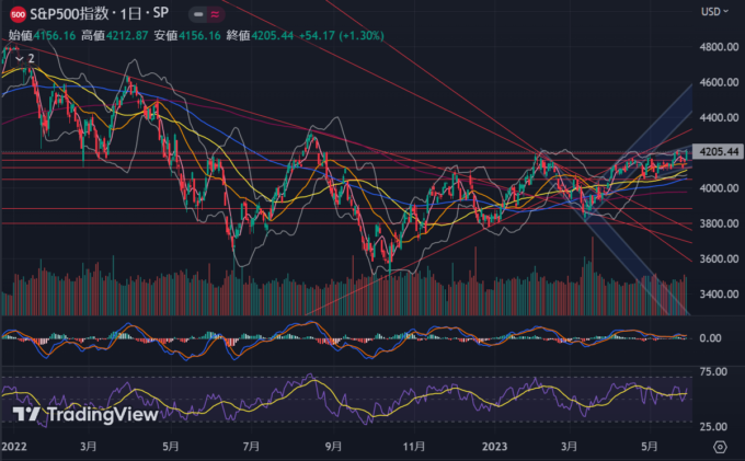 AIに株価が支えられている感じで、債務上限問題懸念で下がっていきそうなところ、NVIDIAに救われているイメージ