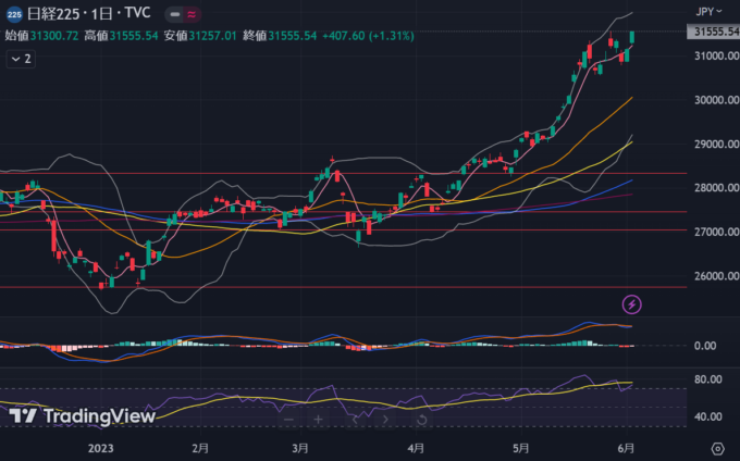 落ちそうで落ちない株式市場、そのまま上げている という印象