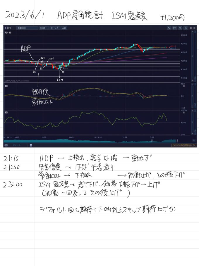 2023/6/1 ADP雇用統計、ISM製造業 +1,200円