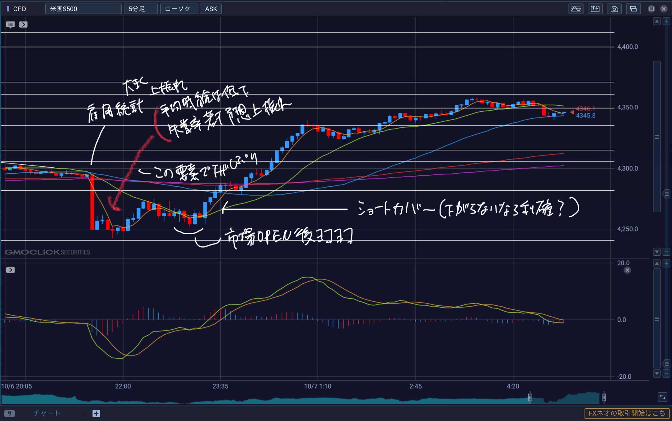 雇用がかなり上振れたのと、ショートカバータイミングでは国債利回りの動きと株の動きにズレがあったからなかなか入るの難しい