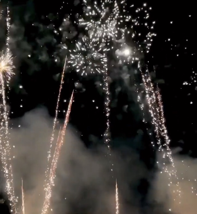 田中の前に、小学校で花火があってこれも迫力あって良かった。たまたま誕生日に重なってお祝いされているみたいだった。